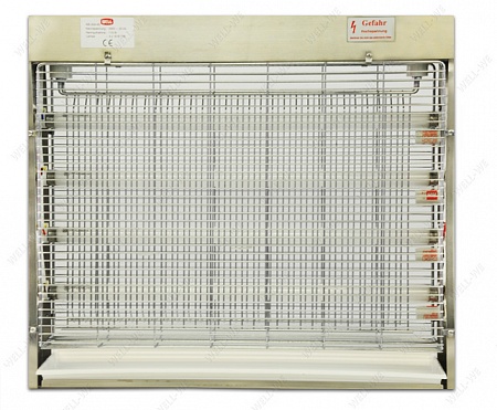 В центре ловушки WELL WE-200-4S установлена высоковольтная электрическая сетка с напряжением 3800-4000 Вольт и несколько ультрафиолетовых ламп в зависимости от мощности ловушки. Спектр лампы подобран таким образом, чтобы максимально привлекать летающих насекомых.